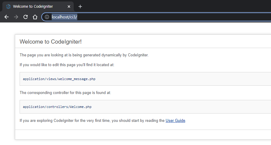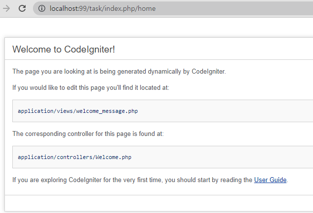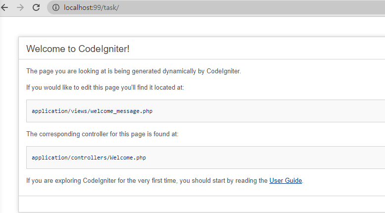 <p>If you are exploring CodeIgniter for the very first time, you should start by reading the <a href="user_guide/">User Guide</a>.</p>