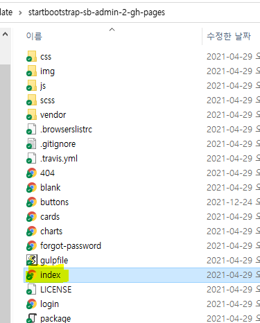 템플릿 적용에 필요한 폴더(css, js 등)을 복사하는 작업까지 마쳤습니다.