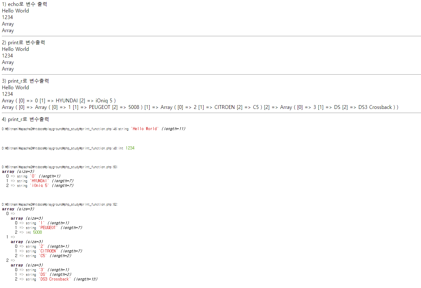 // 출력할 $row['컬럼명']; 형태로 출력해줌