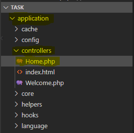 'Task/Application/Controller' 경로 안에 'Home.php'라는 파일을 생성한 후 'Home' 컨트롤러 클래스를 작성해줍니다.